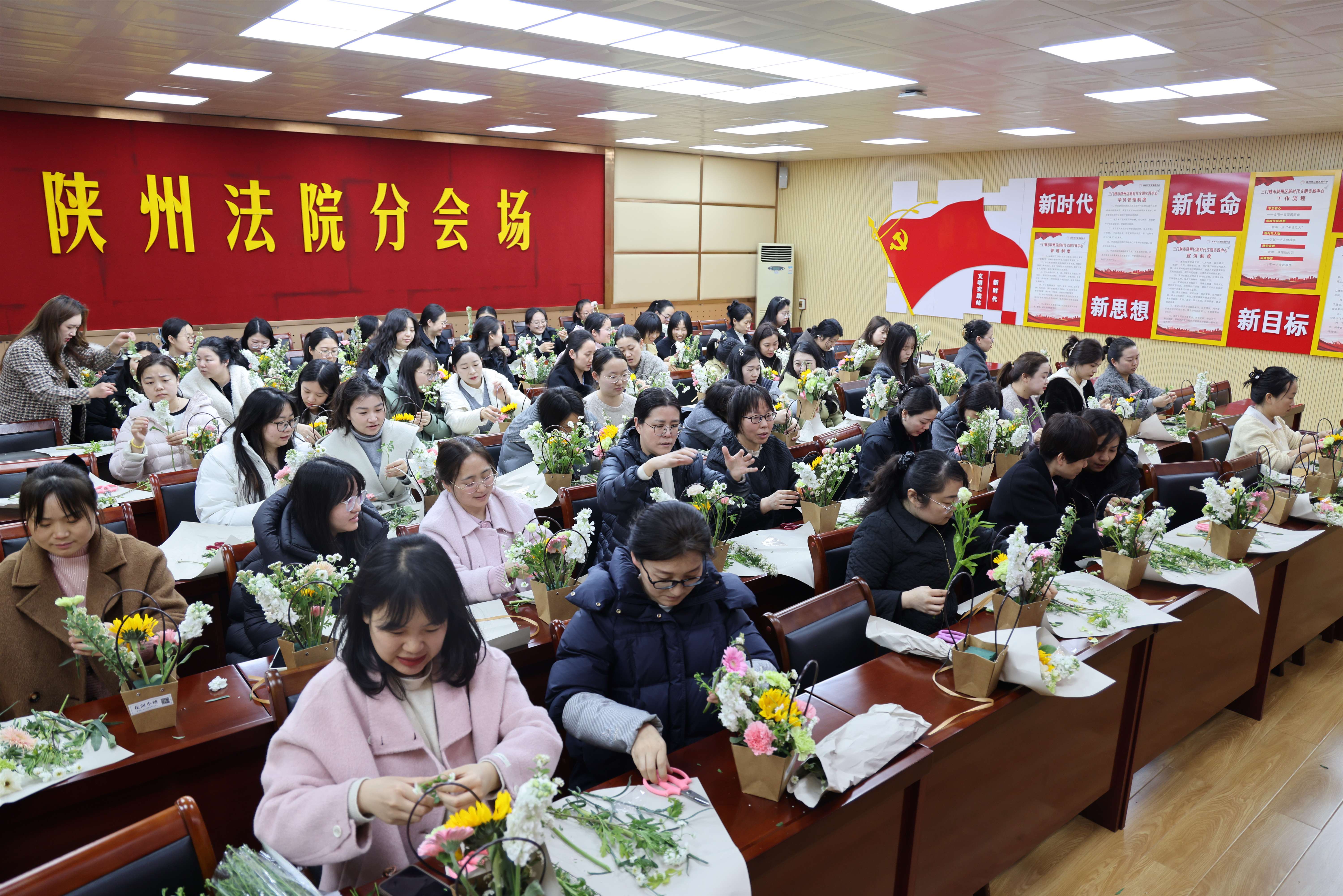 为深入贯彻落实党的二十届四中全会精神,纪念第116个“三八”国际妇女节,丰富女干警精神文化生活,充分展现新时代法院巾帼风采,“三八”国际妇女节前夕,陕州区法院组织女干警开展徒步健身、创意插花系列主题活动,以昂扬姿态与蓬勃活力致敬美好节日。